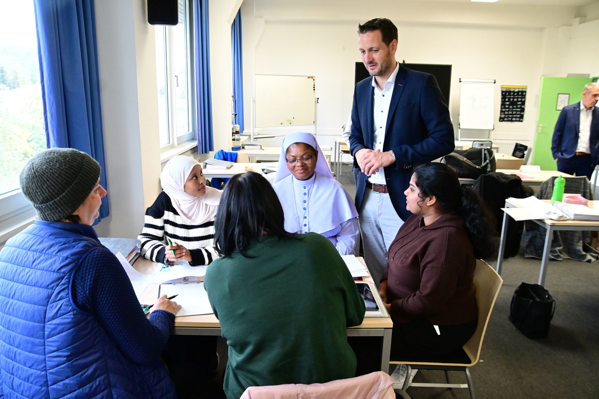 Im anschließenden Austausch beim „zweiten Frühstück“ wurde schnell deutlich, wie groß die strukturellen Herausforderungen sind. Etwa 70 Prozent der Schülerinnen und Schüler stammen nicht aus Deutschland. „Wir würden in der Pflege ganz schön alt aussehen ohne unsere ausländischen Schüler“, sagte Radina. Doch die Integration sei nicht immer einfach: „Sprachförderung sei dringend notwendig, werde aber bislang nicht ausreichend finanziert“, ergänzte Hohmann.